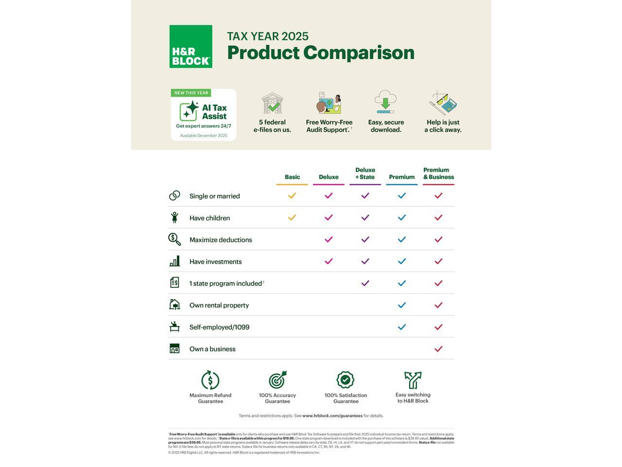 H&R Block Tax Software Premium & Business 2025, Windows 11 Only [Key Card]