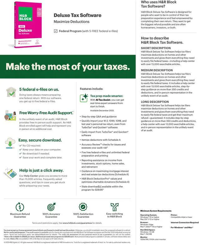 H&R Block Tax Software Deluxe 2025 PC/Mac [Download]