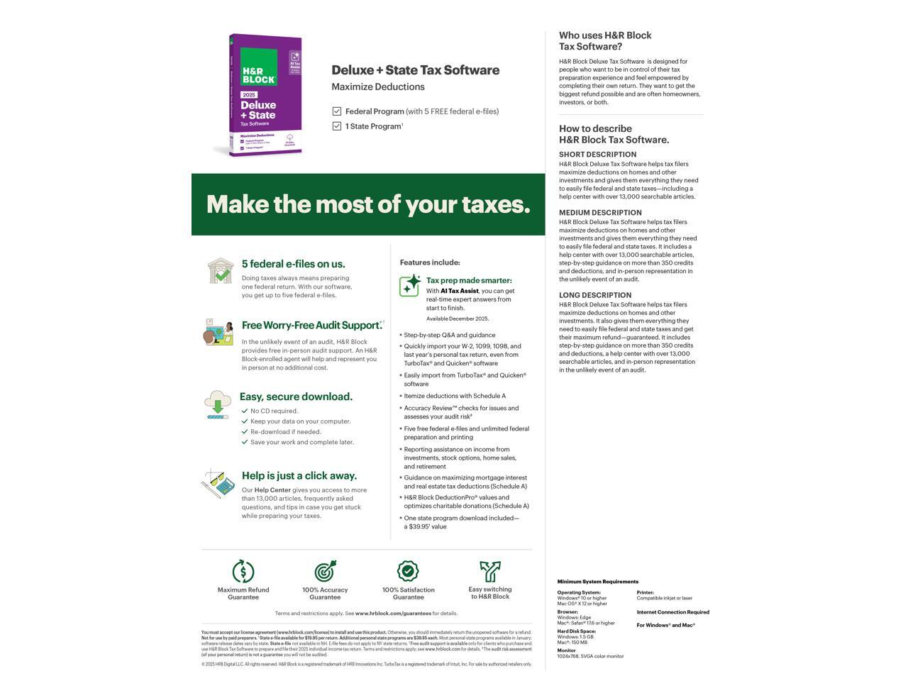 H&R Block Tax Software Deluxe + State 2025 PC/Mac [Download]
