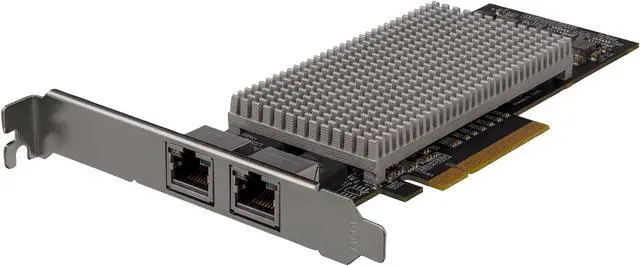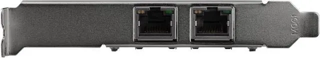 The PCIe Dual NIC is compatible with both 10GBASE-T and NBASE-T networks supporting 2.5 and 5 gigabit speeds on CAT5e cabling and 10 gigabit speed on CAT6a