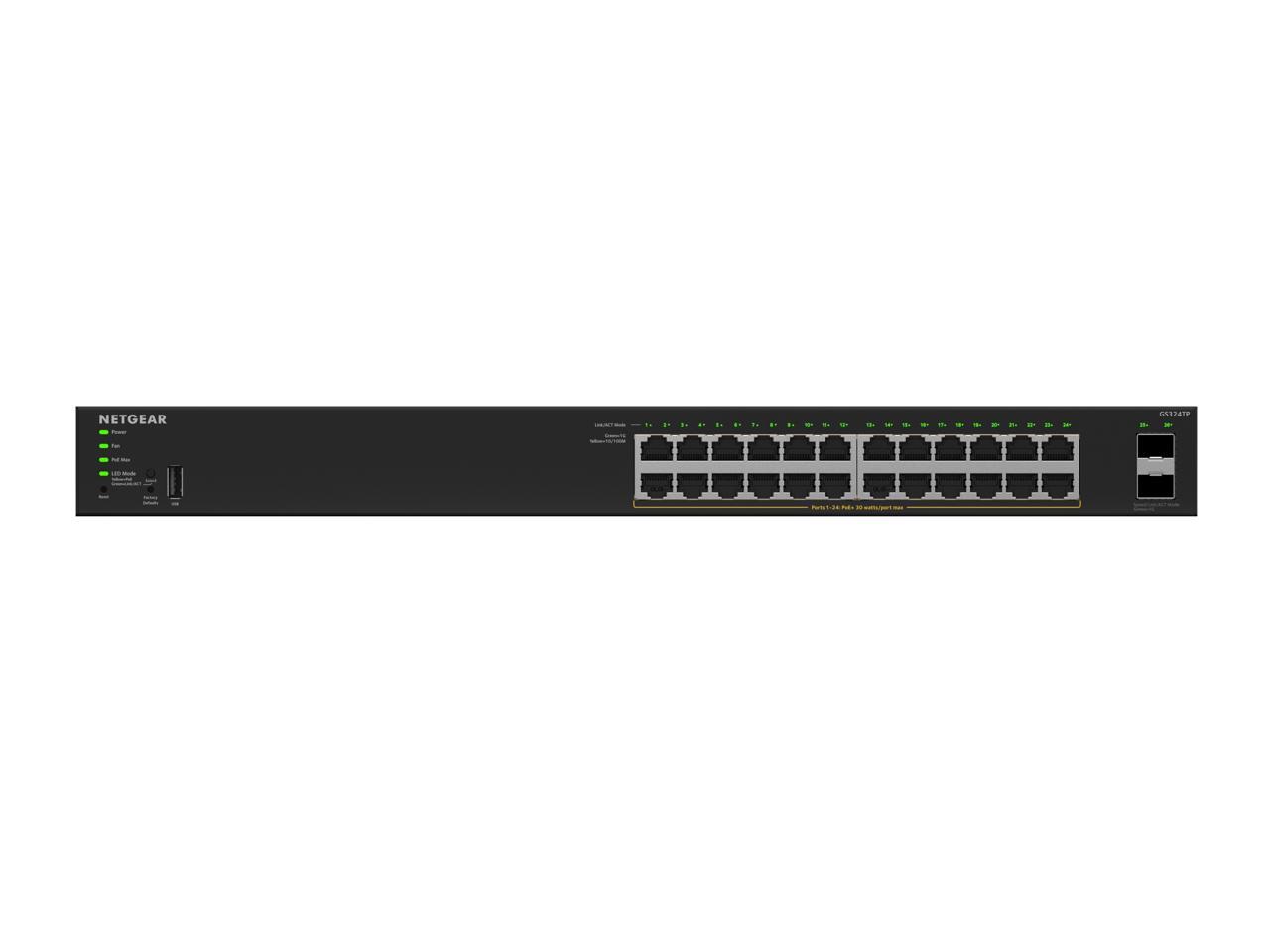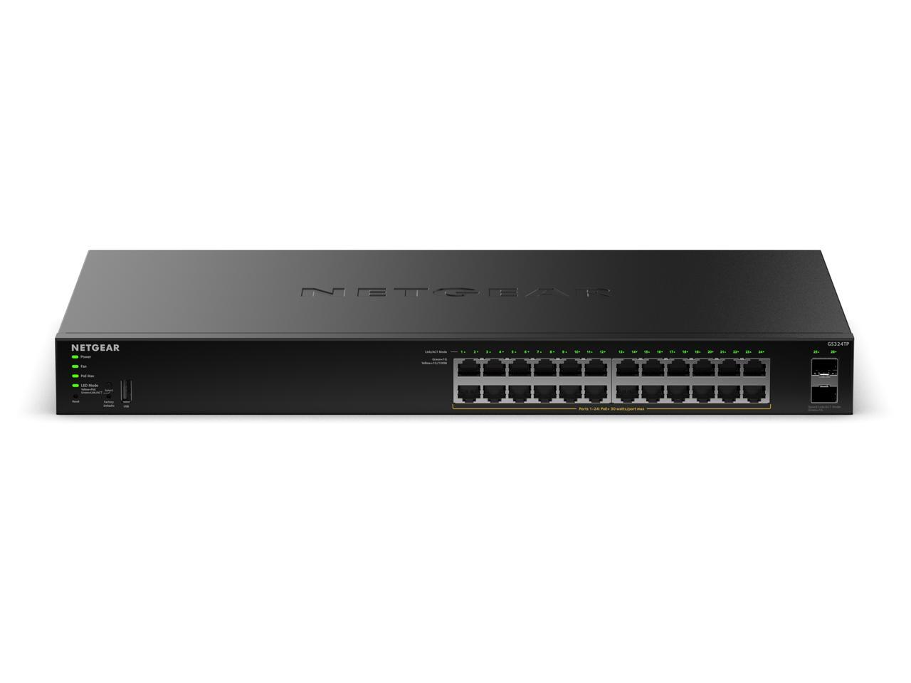 Netgear GS324TP 24-Port Gigabit Ethernet PoE+ Smart Managed Essentials Switch with 2 Dedicated SFP Ports (190W), GS324TP-200NAS