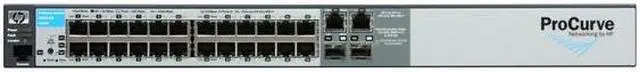 The ProCurve Switch 2510-24 is a managed, Layer 2, 24-port 10/100 switch with 2 dual-personality Gigabit ports providing 10/100/1000-T or mini-GBIC connectivity. The 2510-24 is fanless, ensuring quiet operation and making it ideal for deployment in open spaces. And it offers a basic Layer 2 feature set, including access security and basic traffic prioritization. Designed to cost-effectively meet the needs of small and growing networks, the 2510-24 brings commercial-grade quality to all businesses at an affordable price. It is also standards-based, facilitating interoperability with existing infrastructure and making it easy to deploy and manage.