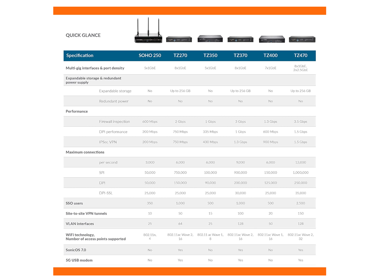 - The latest SonicWall TZ470 series, are the first desktop form factor nextgeneration firewalls (NGFW) with 10 or 5 Gigabit Ethernet interfaces. The series consist of a wide range of products to suit a variety of use cases.