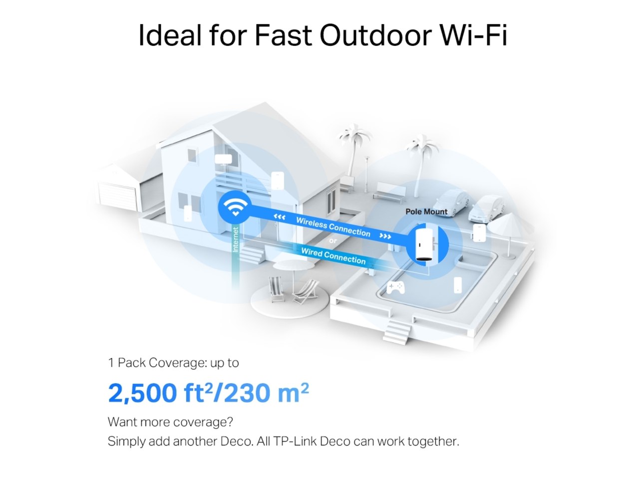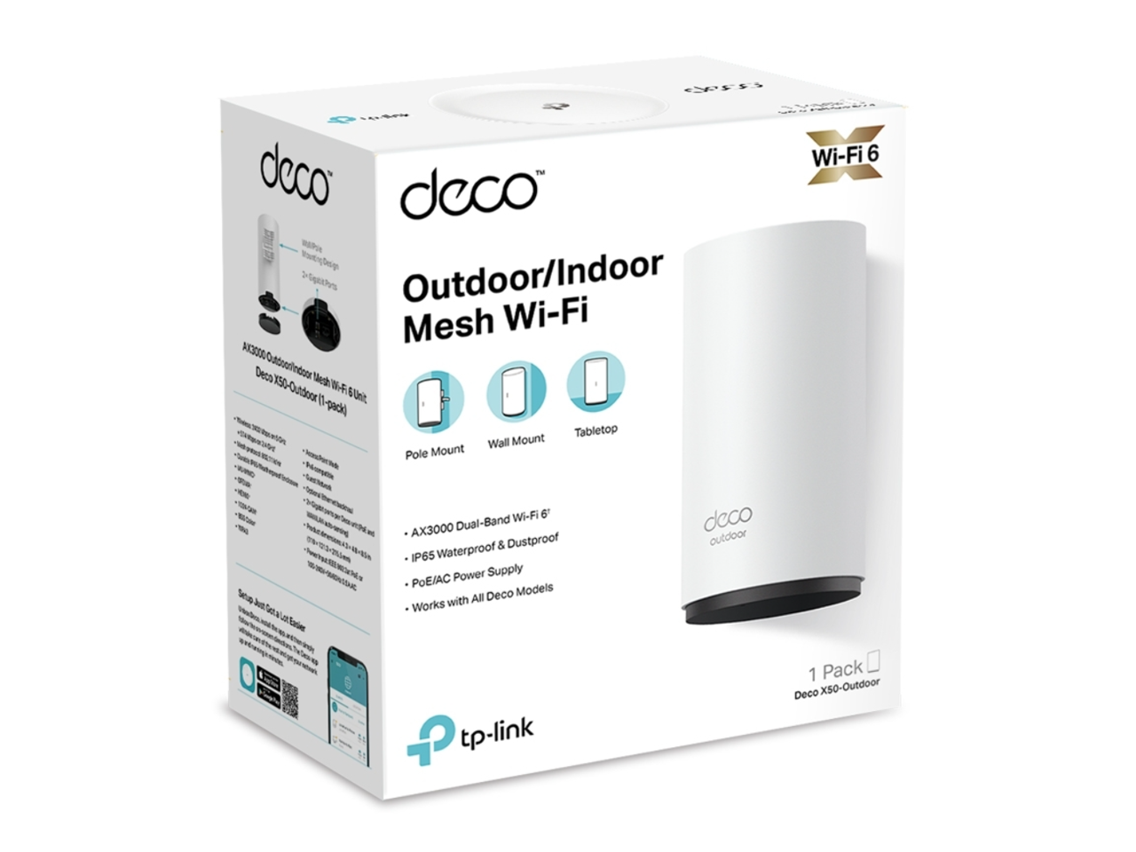 TP-Link Deco Outdoor Mesh WiFi (Deco X50-Outdoor), AX3000 Dual Band WiFi 6 Mesh, 2 Gigabit PoE Ports, 802.3at PoE+,Weatherproof, Works with All Deco Mesh WiFi