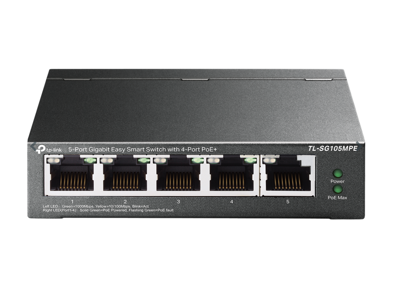 TP-Link TL-SG105MPE | 5 Port Gigabit PoE Switch | Easy Smart Managed | 4 PoE+ Ports @120W, w/ 1 Uplink Gigabit Port | Limited Lifetime Protection | QoS, Vlan, IGMP & LAG | Fanless | PoE Auto Recovery