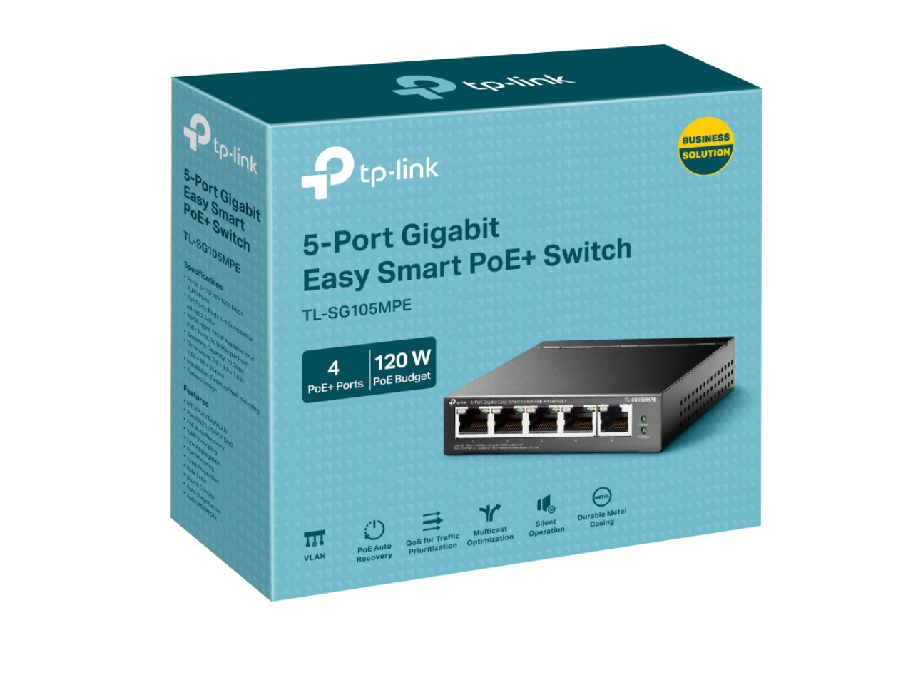 ?Flexible Full Gigabit 5 Port PoE Configuration?4x PoE+ (802.3at/af) 10/100/1000 Mbps RJ45 ports providing up to 30W per port and total PoE power budget of 120W, together w/ 1x Gigabit Non-PoE Ports for high-speed connections.