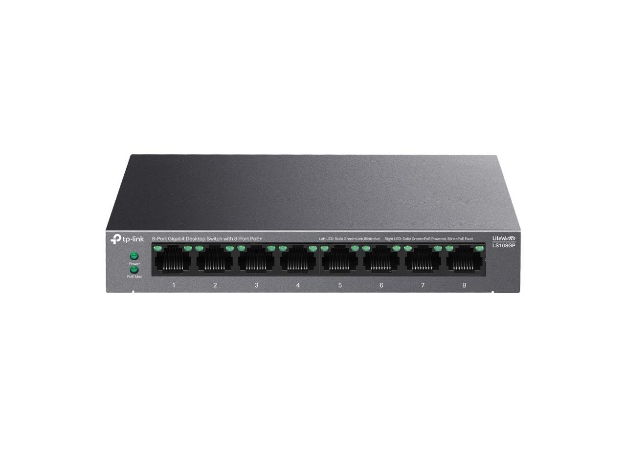 TP-Link LS108GP | 8-Port PoE Gigabit Ethernet Switch | 8 PoE+ Port @ 62W | Plug & Play | Extend, Priority & Isolation Mode | Desktop/Wall Mount | Silent Operation