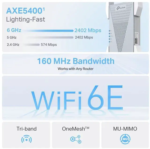 RE813XE takes full advantage of tri-band, empowering up to 96 devices with lightning-fast 5400 Mbps speed.