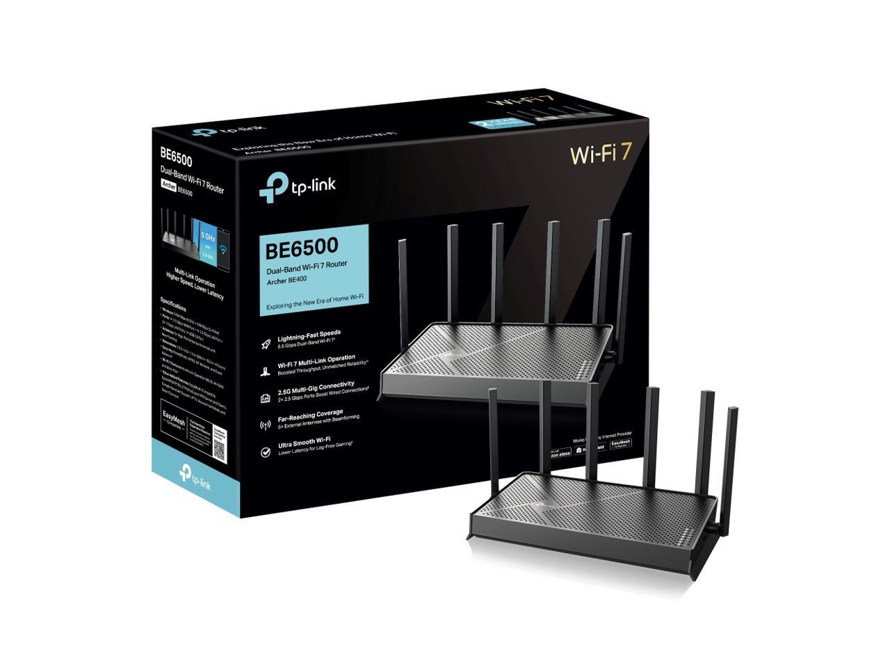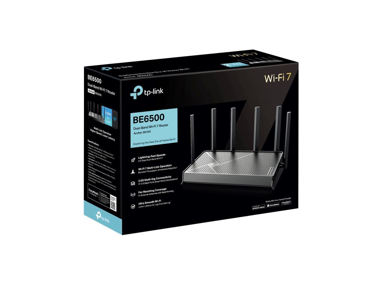 TP-Link Archer BE6500 Dual-Band Wi-Fi 7 Router (Archer BE400) | Dual 2.5 Gbps Ports USB 3.0 | Covers up to 2,400 Sq. ft and 90 Devices | Quad-core CPU| HomeShield, Private IoT, Free Expert Support