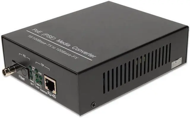 10/100M FX-BX POE is a 10/100Base-TX to 100Base-FX media converter with Power Over Ethernet (POE), which allows two types of network segment to be connected easily. Complete with IEEE802.3af standard, the AC powered PoE media converter is a Power Sourcing Equipment (PSE) which combines data transferred over a fiber optic link with 48V power supply, providing power to IEEE802.3af powered device (PD) over CAT5 UTP cable (cable length up to 100meters / 330feets). The converter includes a single port PSE controller, which offers PD signature sensing and power monitoring features. Other features include over-current protection, LFP function. The LFP (Link Fault Pass-through) allows the media converter to monitor both the fiber and copper RX port for loss of signal. In case of a loss of RX signal on one media port, the converter will automatically disable the TX signal to the other media port, thus passing through the link fault.