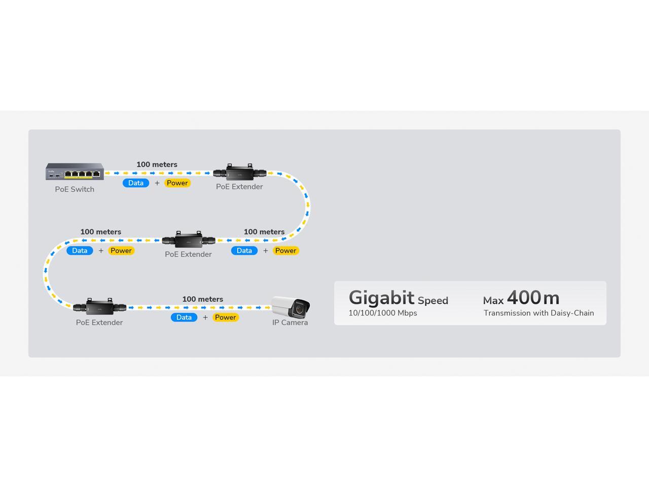 10/100/1000Mbps Outdoor Waterproof PoE+ Extender