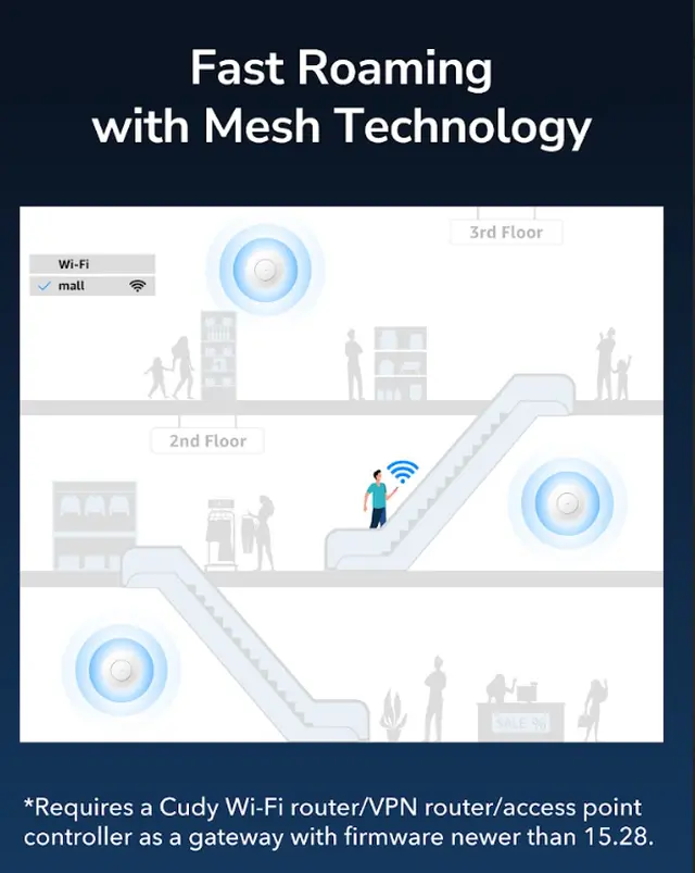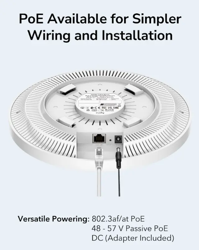A wall/ceiling-mounted WiFi 6 AP, featuring large RAM and shielded 2.5G ports, designed for connecting transportation hubs, hotels, offices, lecture halls, and classrooms.