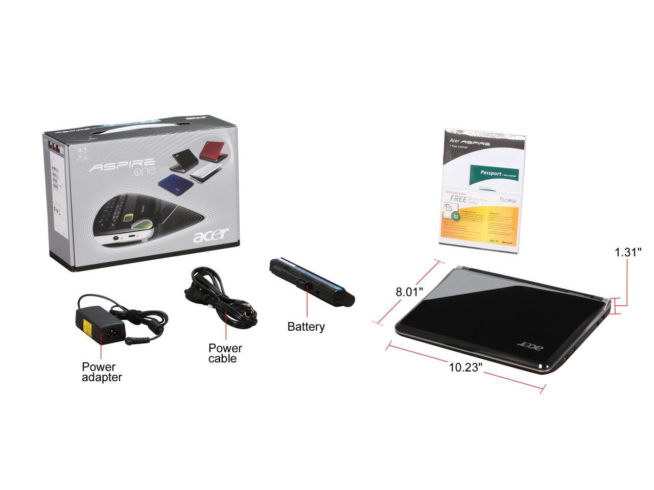 Acer Aspire One AOD150-1577 Black Intel Atom N270(1.60 GHz) 10.1" WSVGA 1GB Memory 160GB HDD Netbook