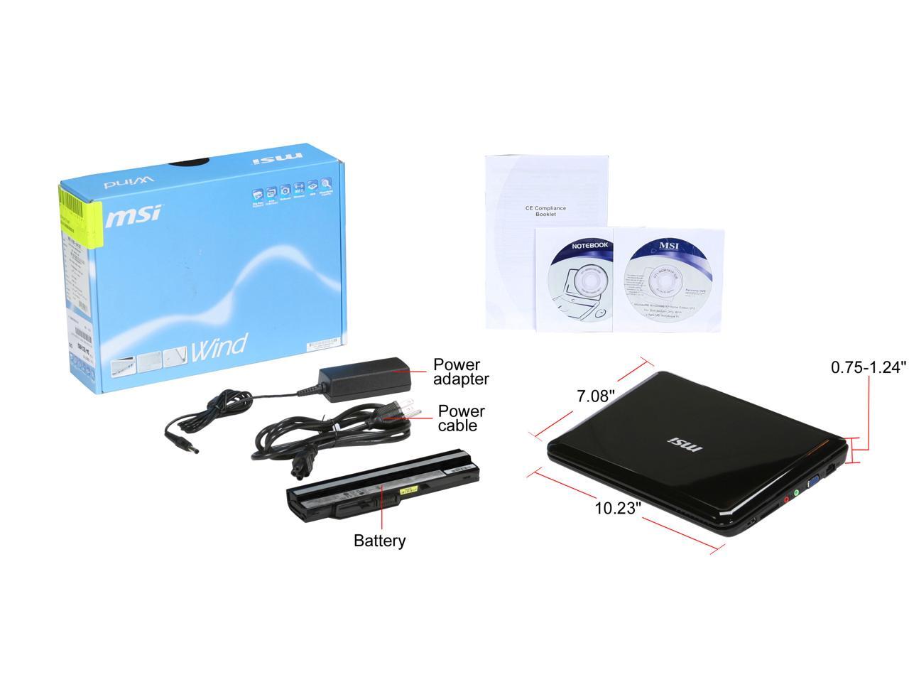 MSI Wind U100-641US Black Intel Atom N270(1.60 GHz) 10.0" WSVGA 1GB Memory 160GB HDD Netbook