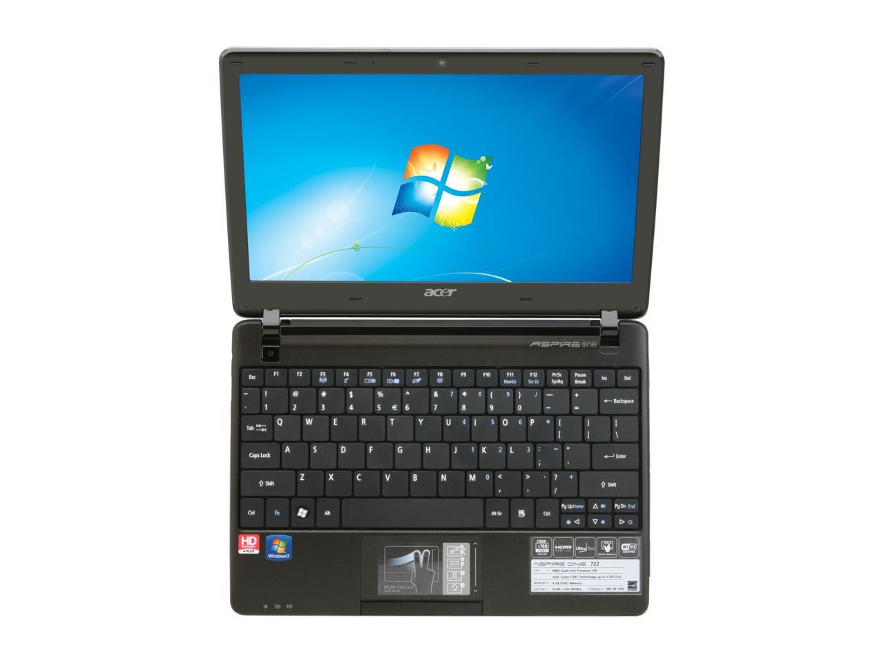 Acer Aspire One AO722-0418 Espresso Black AMD Dual-Core Processor C-60 (1.00 GHz) 11.6" 4GB Memory 500GB HDD Netbook