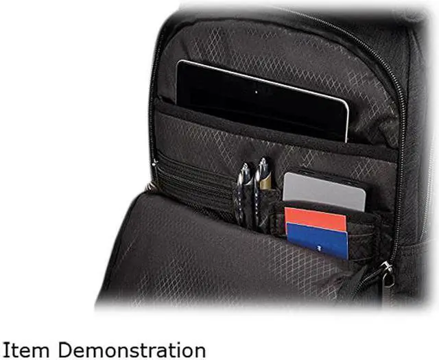 ? Tablet/iPadâ® pocket with tricot lining. ? Padded drop in laptop compartment holds up to a 15.6" laptop. ? Key fob in front zippered pocket for keys or other small clip-on items. ? Top carry-handle is padded for comfort. ? Air mesh padding on back and shoulder straps. ? Matte gunmetal hardware for durability and style. ? Constructed of two-tone ripstop polyester for durability. ? Bottom of bag is water-resistant. ? SmartSleeveâ?¢ slides over Upright handles for easy mobility. ? Multiple zippered quick-stash pockets provide plenty of storage and easy access to items. ? Weight: 2.0 lbs.