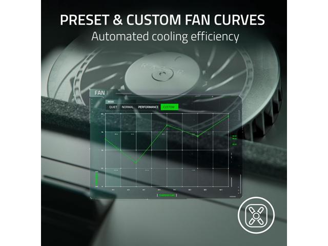 - Preset & Custom Fan Curves - Keep your system cool with recommended presets or calibrate to adjust ambient sound levels or desired internal temperature via Razer Synapse.