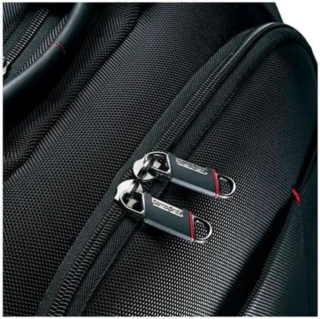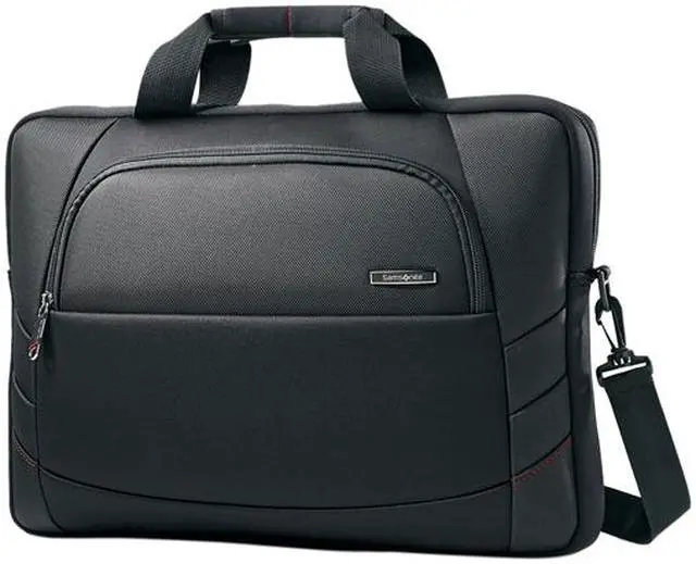 Use this sleek laptop briefcase to protect your laptop with up to a 17.3" display from damage while you travel. Briefcase is made of a ballistic nylon to withstand everyday use. Front pocket keeps your tablet secure with a brushed poly lining. The included removable shoulder strap is padded to offer extra comfort when you're on-the-go.