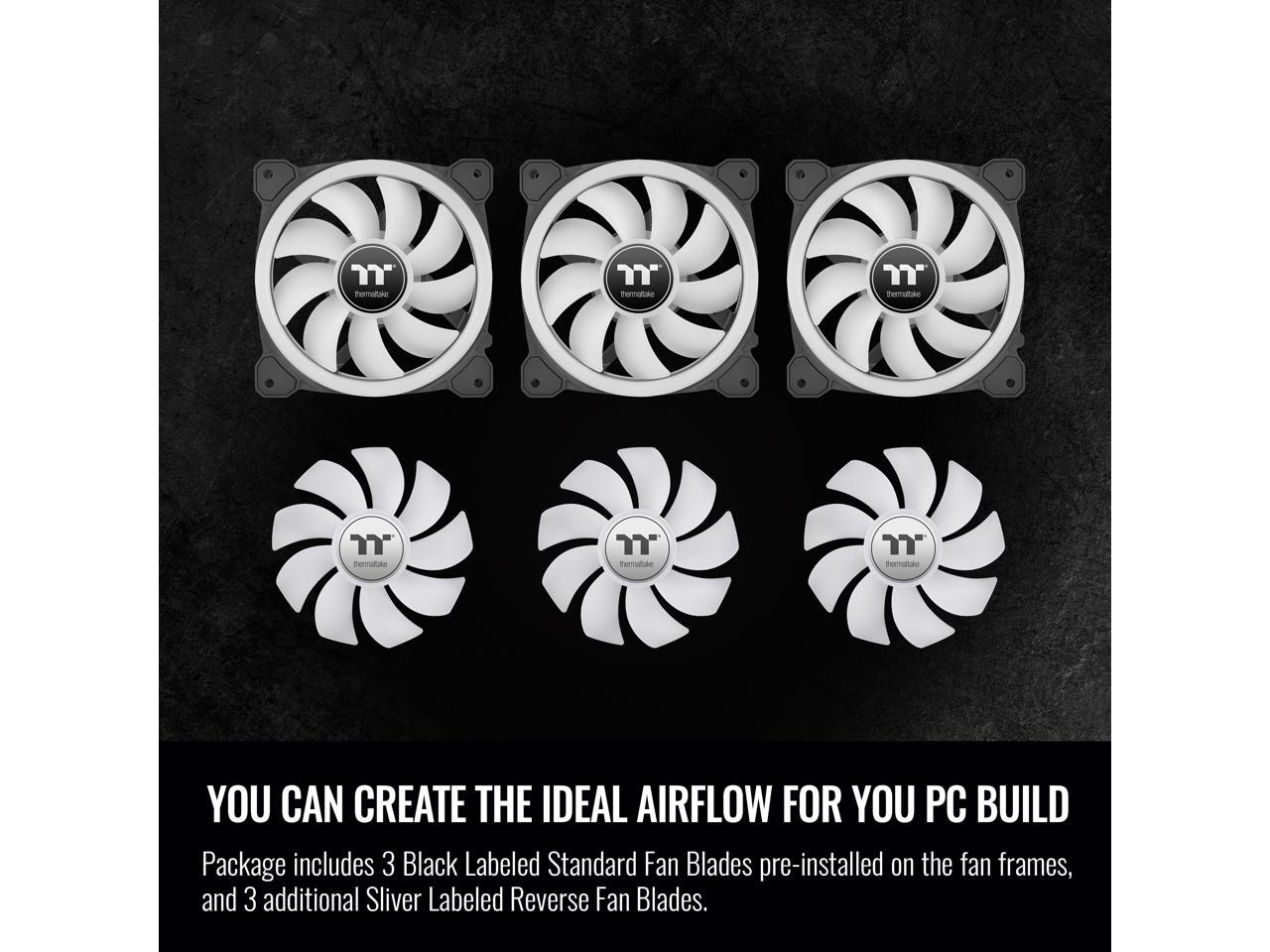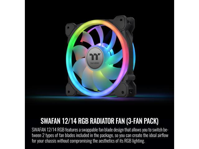 Thermaltake SWAFAN 12 RGB Radiator Fan TT Premium Edition 3 Pack, Swappable Fan Blade Design, Customizable air flow direction, 2000 RPM., CL-F137-PL12SW-A