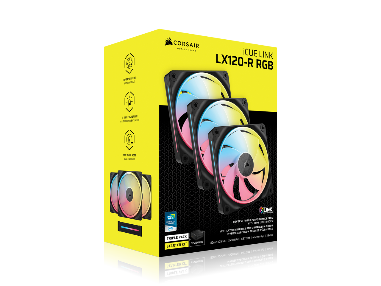 CORSAIR iCUE LINK LX120-R RGB 120mm PWM Reverse Fans Starter Kit – Reverse Fan Blade - Dual Light Loops - Easy iCUE LINK Connectivity - Magnetic Dome Bearing