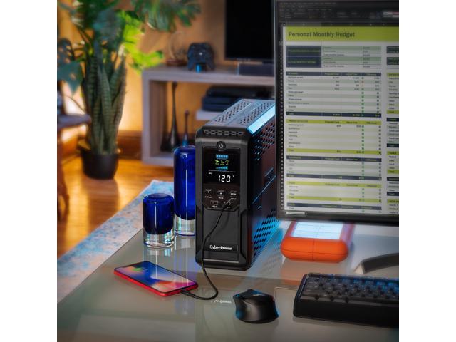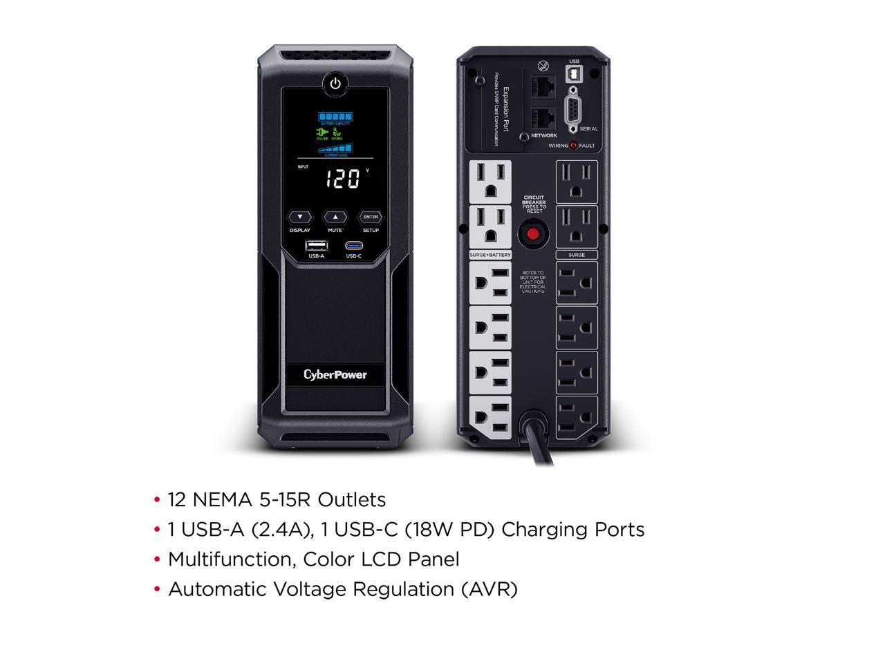 CyberPower BRG1500AVRLCD2 Intelligent LCD UPS Systems - 1500VA/900W, 57 - 120 VAC, NEMA 5-15P, Mini-Tower, 12 Outlets