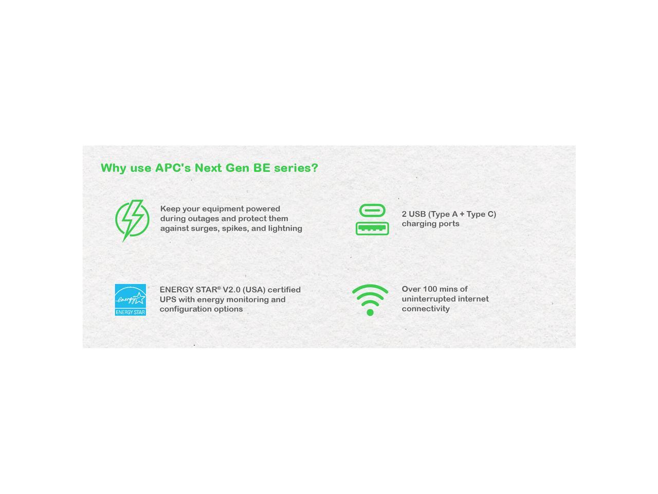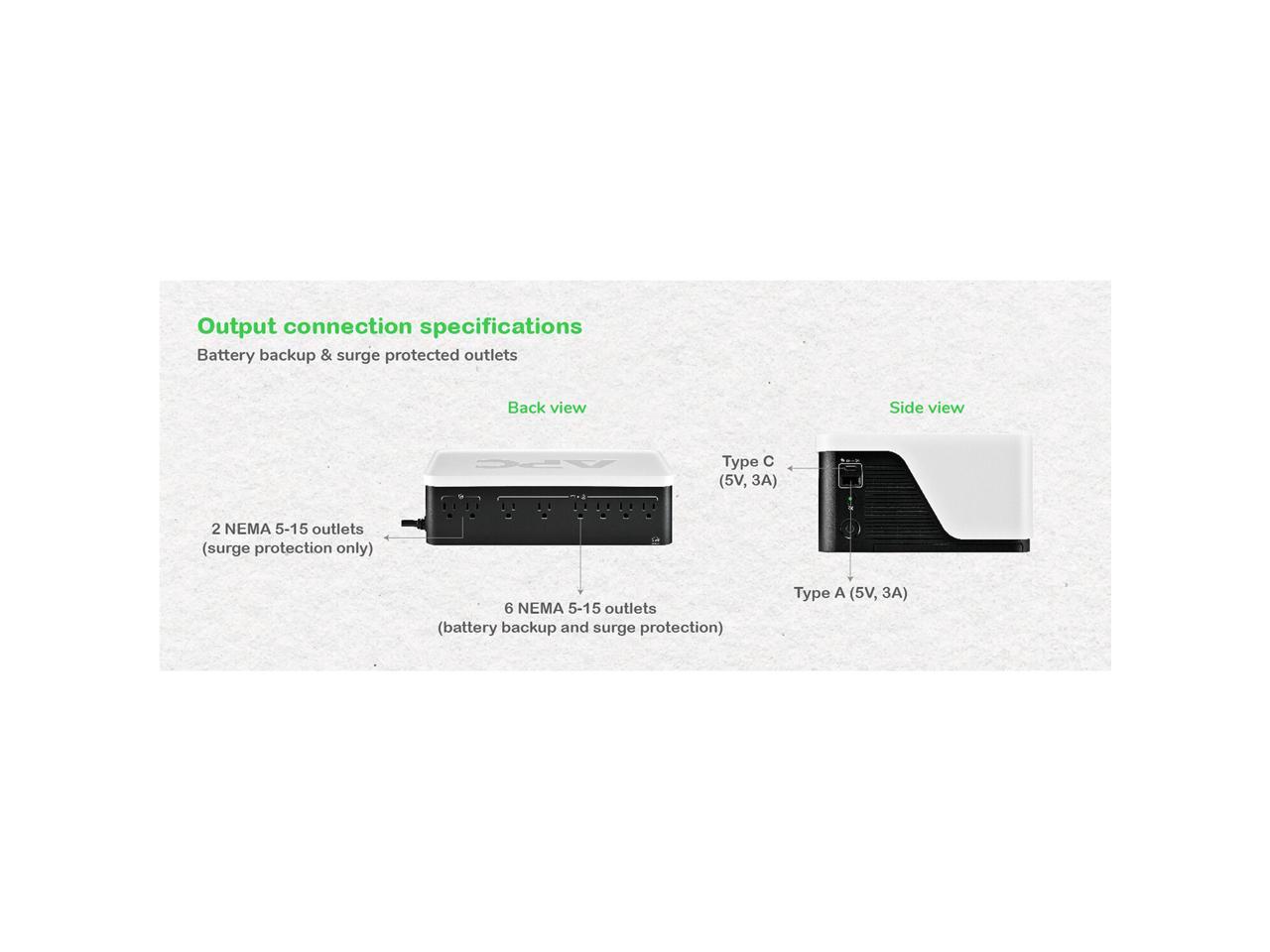 APC BE700G3 UPSBack-UPS, 700VA/420W, Floor/Wall Mount, 120V, 6x NEMA 5-15R outlets, USB Type A + C Ports, Battery is not user replaceable - Floor/Wall Mountable - AVR - 8 Hour Recharge - 120 V Input