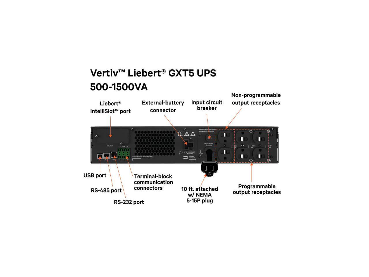 Vertiv Liebert GXT5-1500LVRT2UXL GXT5 UPS - 1500VA/1350W 120V | Online Rack Tower Energy Star - Double Conversion| 2U| Optional RDU101 Card| Color/Graphic LCD