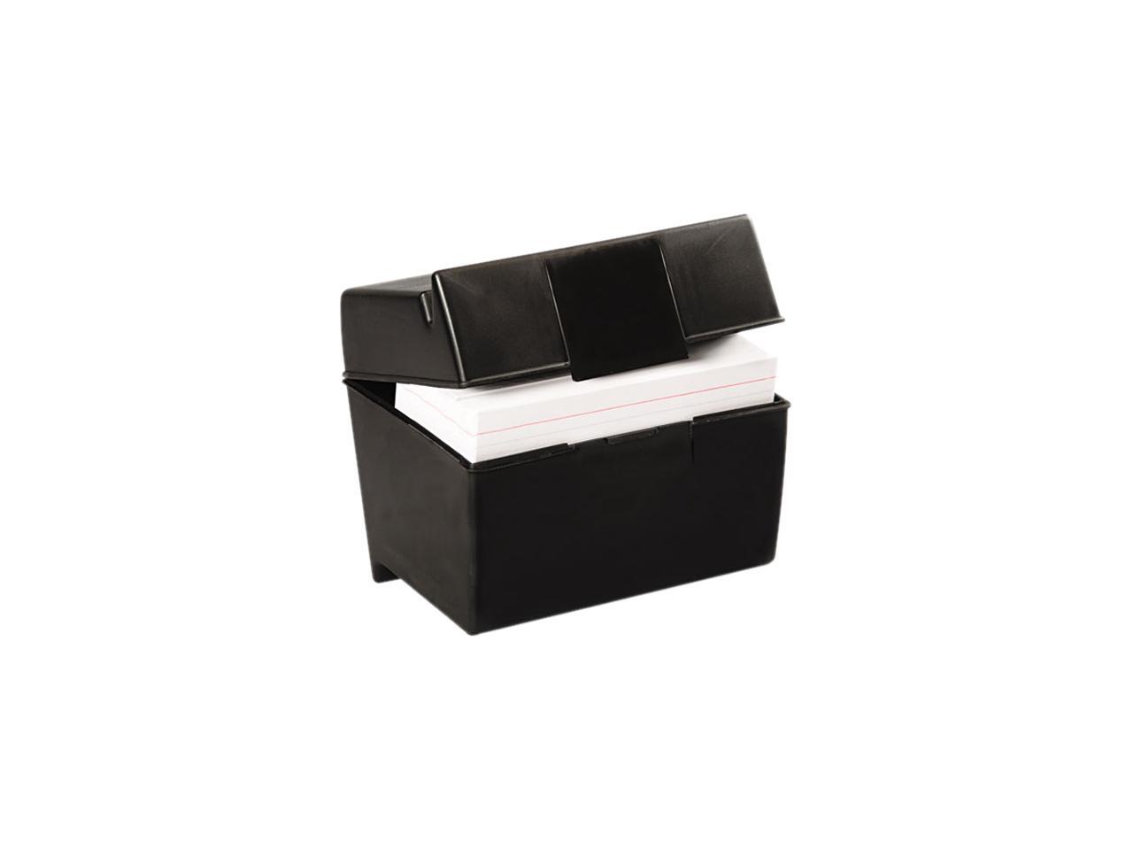 Oxford 01461 Plastic Index Card Flip Top File Box Holds 400 4 x 6 Cards, Matte Black
