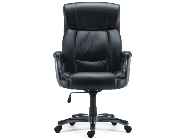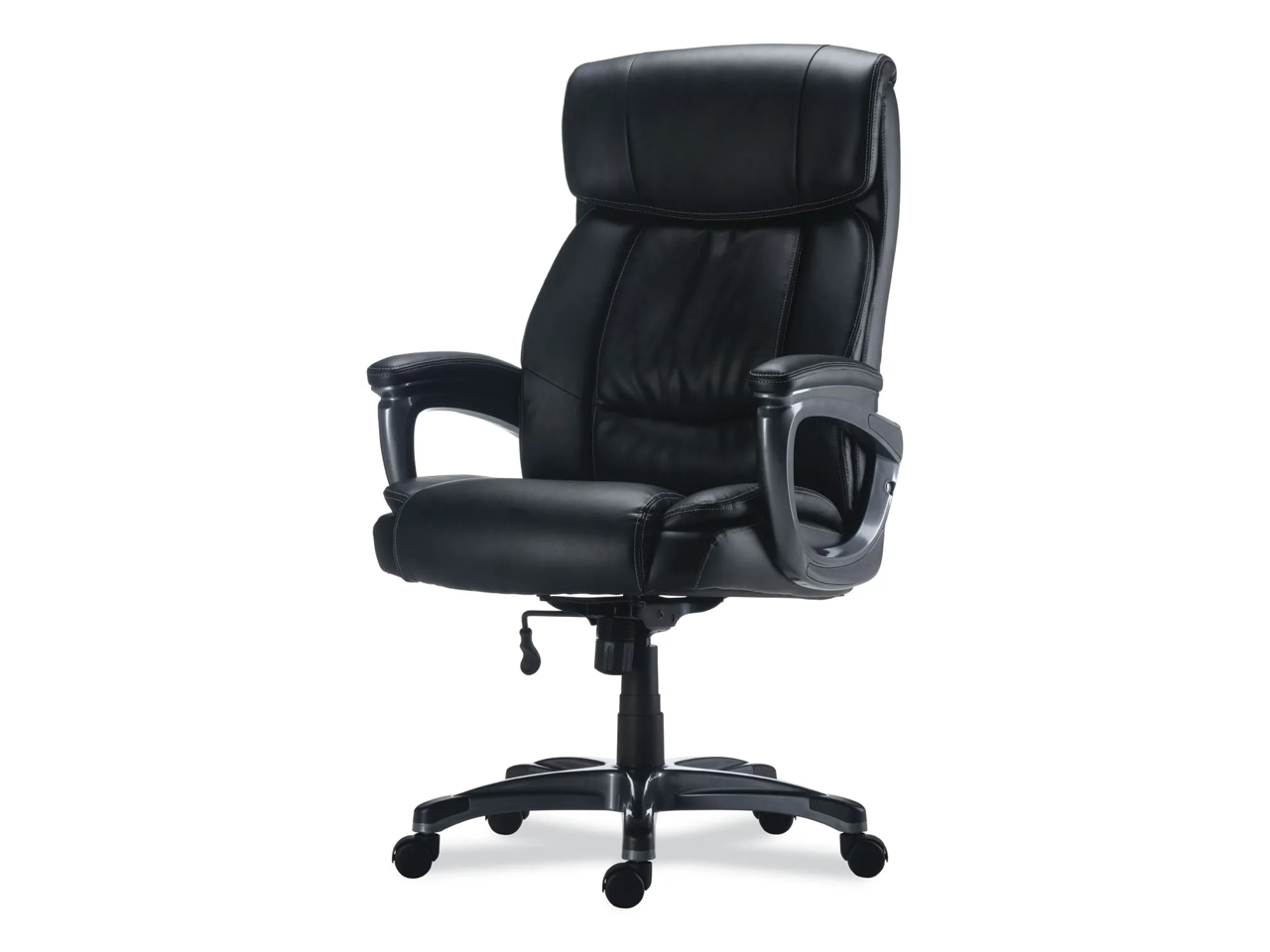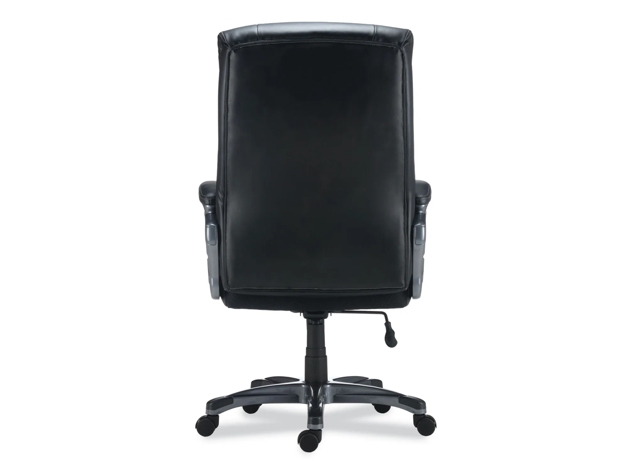 - Smooth, cushioned, leather back and seat are easy-to-clean.