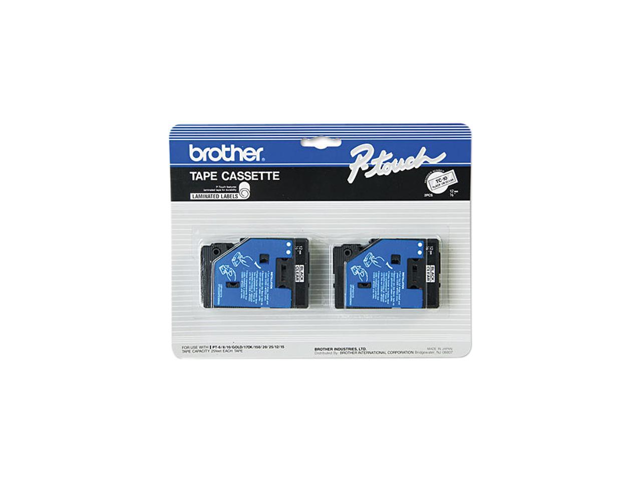 Brother P-Touch BRTTC10 TC Tape Cartridges for P-Touch Labelers, 1/2"w, Black on Clear, 2/Pack
