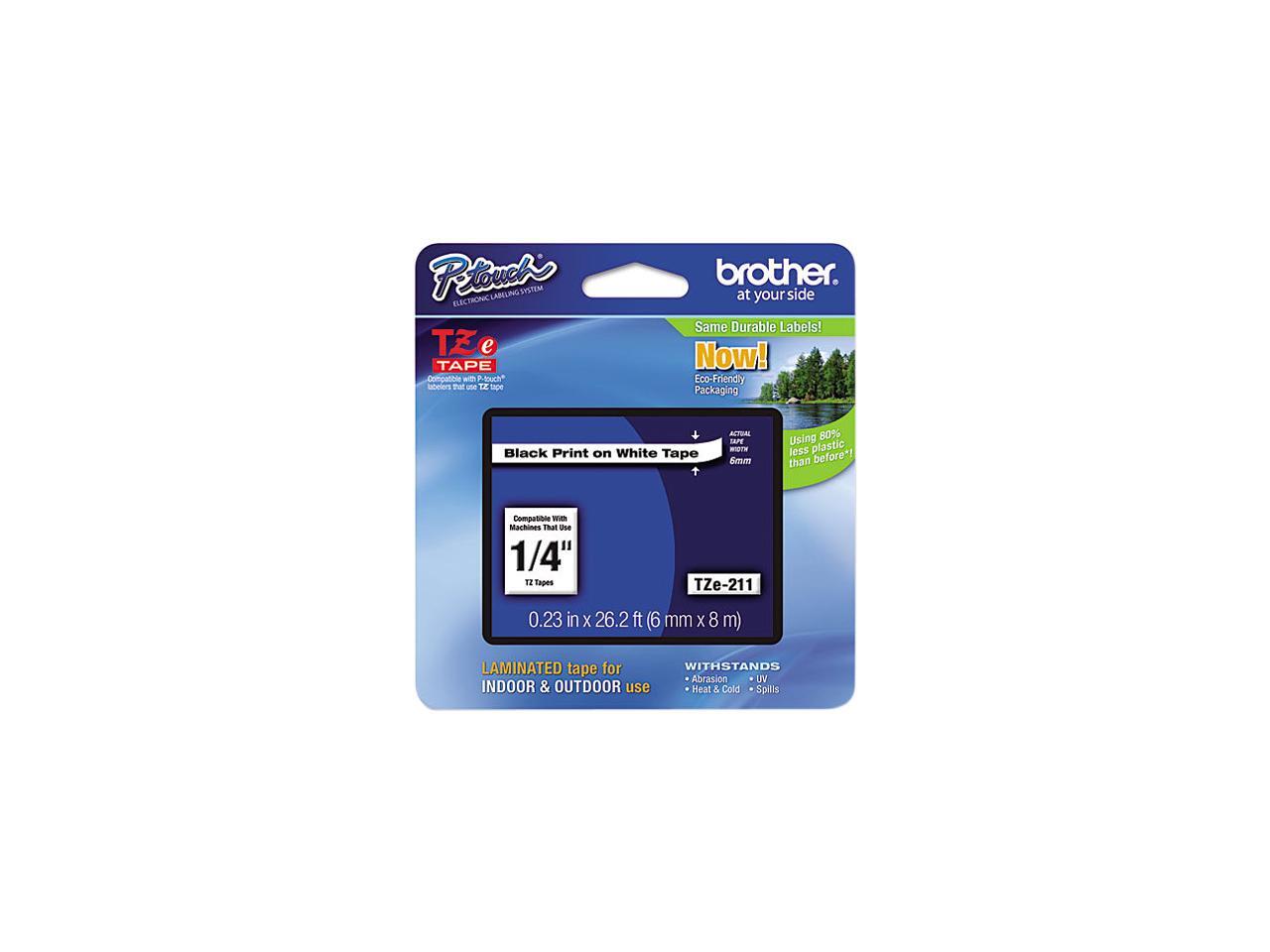 Brother TZE211 TZ Label Tape Cartridge 0.25" Width x 26 ft Length - 1 Each - White