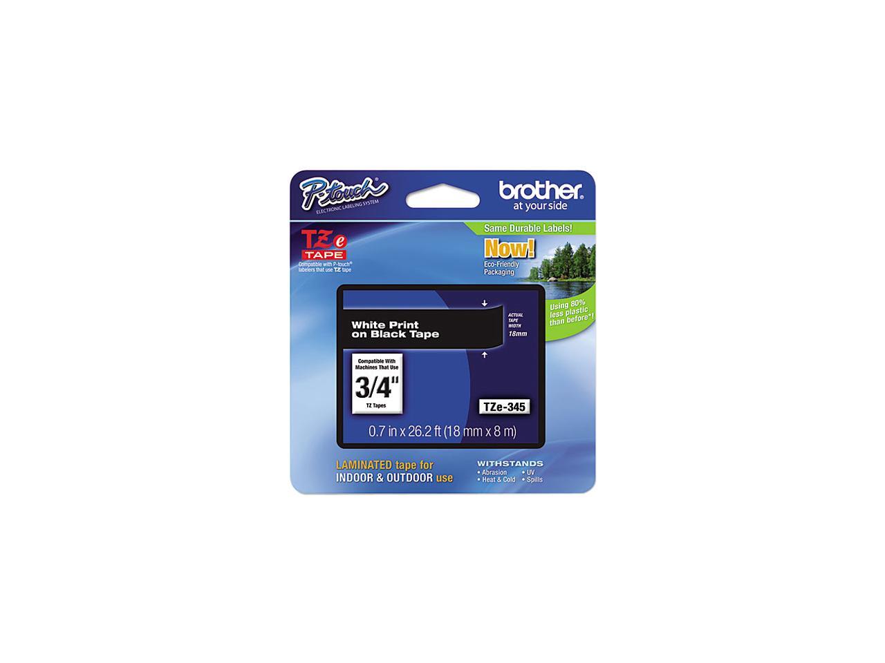 Brother P-Touch TZE345 TZe Standard Adhesive Laminated Labeling Tape, 3/4w, White on Black