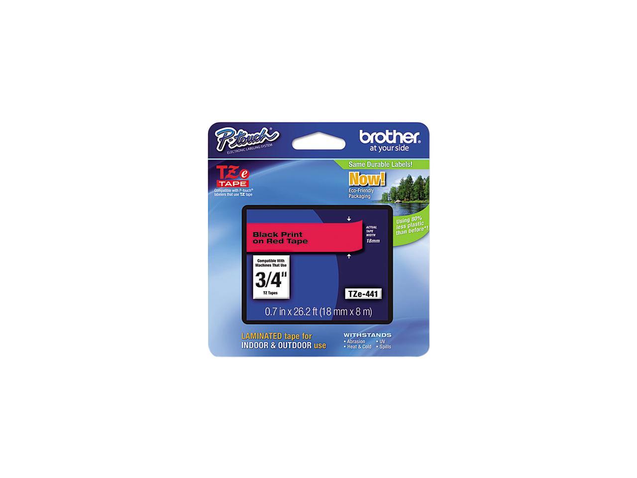 Brother P-Touch TZ Series Lettering Tape, 0.75", Black on Red