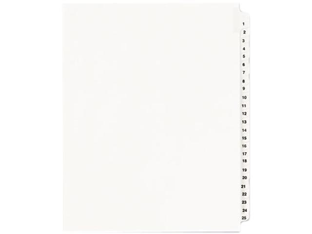 Avery 01330 Avery-Style Legal Side Tab Divider, Title: 1-25, Letter, White, 1 Set