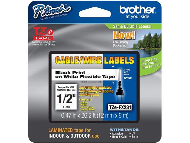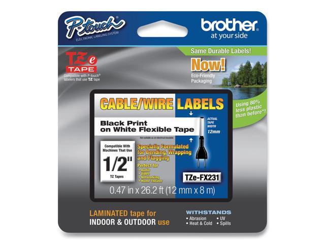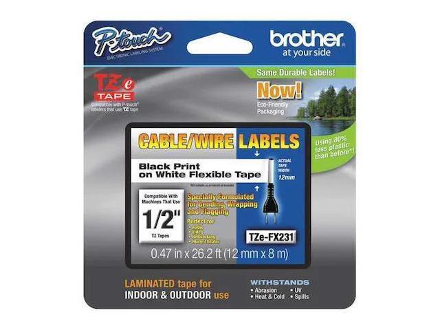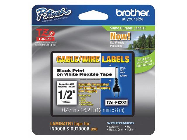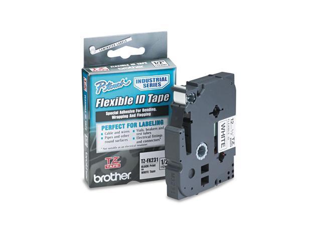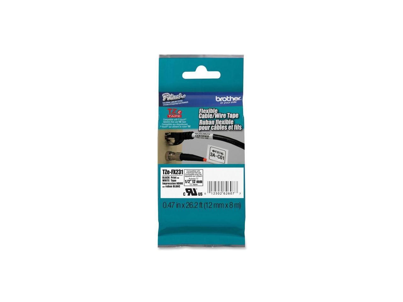 Brother TZE-FX231 Black on White Flexible ID Tape for P-touch Label Printer, 12 mm (0.47") x 8 m (26.20 ft.) - 1 Each