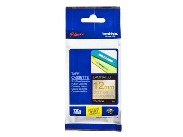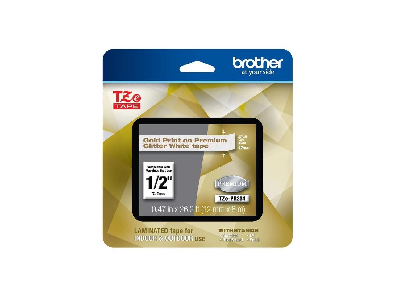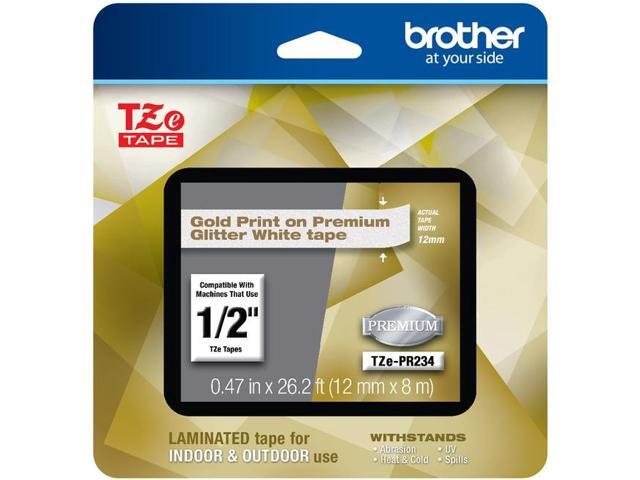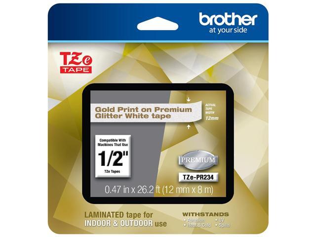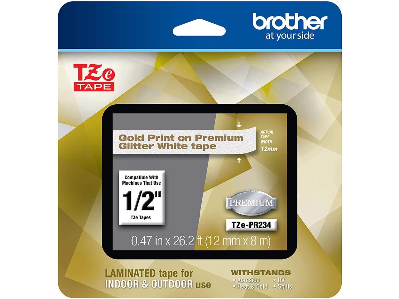 Brother TZePR234 Gold Print on Premium Glitter White Laminated Tape for P-touch Label Maker, 12 mm (0.47") Wide x 8 m (26.20 ft.) Long