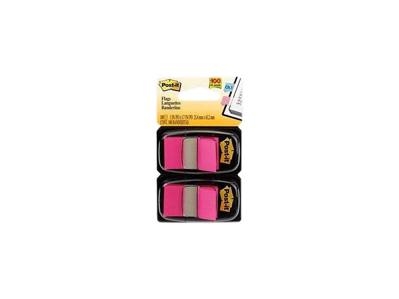 Post-it 680-BP2 Flags, Bright Pink, 1 in Wide, 50/Dispenser, 2 Dispensers/Pack
