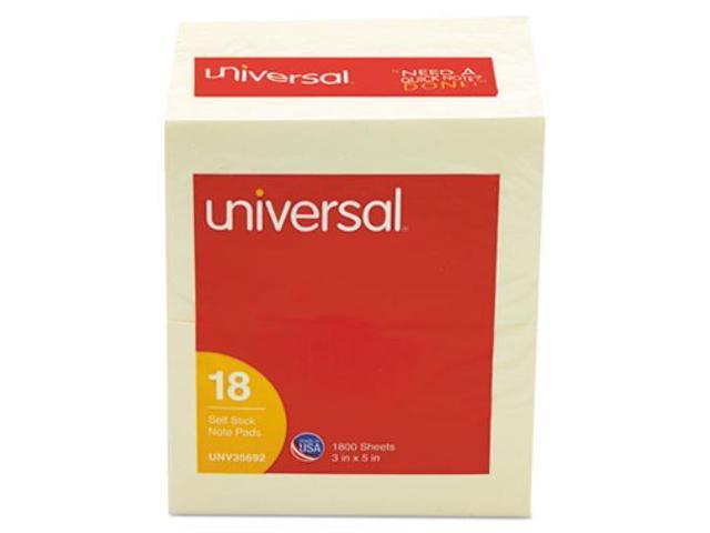 Universal UNV35692 Self-Stick Note Pads, 3 x 5, Yellow, 100-Sheet, 18/Pack