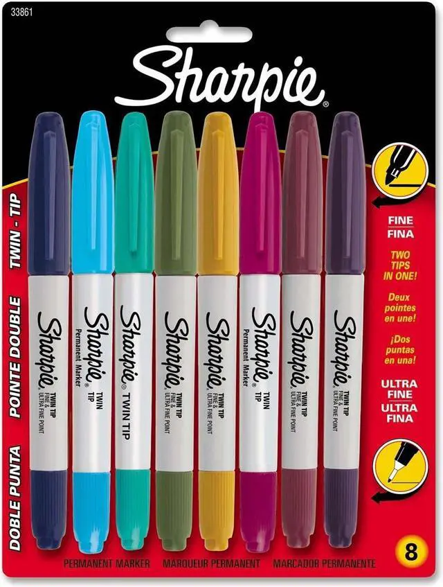 With two tips in one, these markers let you express yourself any way you want. Bold to the max and permanent to the core, Sharpie permanent markers inspire you to transform ordinary surfaces into passionately creative statements. Made to write practically everywhere, vivid Sharpie markers eliminate dull and boring. Sharpie has iconic ink that dries quickly and resists both water and fading. While pale imitations wither away, Sharpie markers make creations that endure. Featuring both a bold fine point and a precise ultra-fine tip, Sharpie Super Twin Tip Permanent Markers ignite courageous self-expression. Marker Type: All-Purpose Permanent Markers; Assortment: Black; Blue; Green; Lavender; Orange; Pink; Purple; Turquoise; Color(s): Assorted; Tip Type: Bullet.