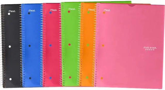 Make it your own. Customize your notebook with any photo or drawing of your choice. Simply slip it into the clear-view poly cover on the front cover. Durable, clear-view poly cover allows customization and quick paper storage. An additional pocket on the inside front cover offers easy paper access. One-subject notebook contains 100 white sheets of college-ruled paper and a two-pocket divider for loose paper. Each sheet is three-hole punched to fit inside standard binders and Neat Sheet perforated for easy tear-out. Wirebound notebook is bound with Spiral Lock wire. Colorful front cover is made of durable poly. Durable back cover is made of coated Natural Kraft. One of the assorted covers will be randomly selected and shipped.