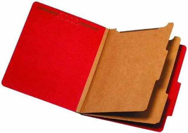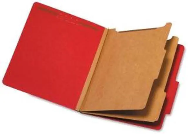 With six filing surfaces, these pressboard classification folders make ideal project files. Inner, 17 point pressboard dividers help subdivide your documents within the folders. 2" embedded fasteners in positions No. 1 and 3 on the covers and 1" dual fasteners on the two dividers keep documents secure and allow you to file in sequential order. Durable, Tyvek tape spine expands 2-1/2" with your project. Standard, 2/5-cut tab right of center with an undercut score on front cover provides room for labels or handwritten titles. Classification folders are made with durable, 25 point pressboard covers and a high percentage of recycled material.