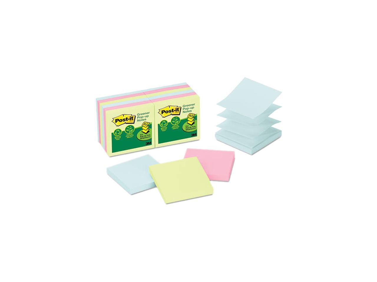 Post-it Greener Notes R330RP-12AP Recycled Pop-Up Notes Refill, 3 x 3, Pastel, 100 Sheets/Pad, 12 Pads/Pack