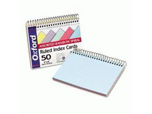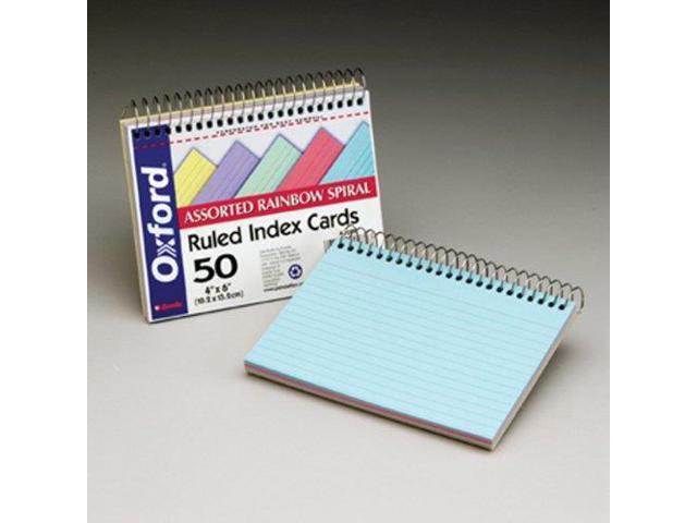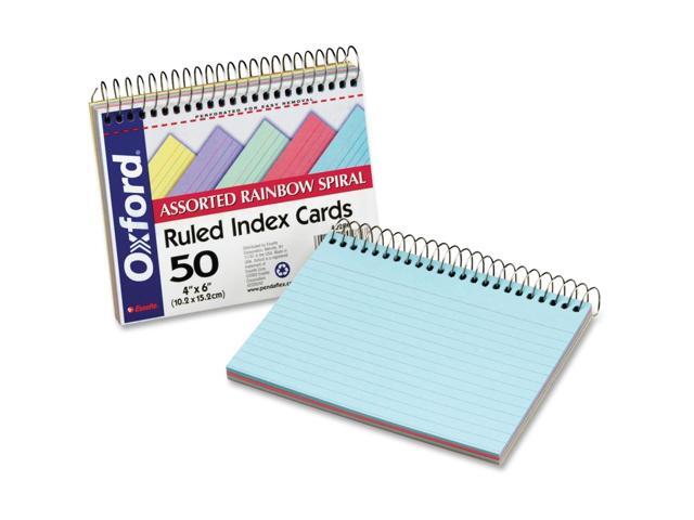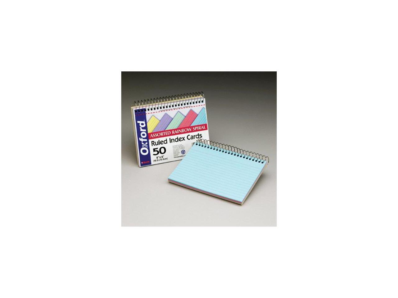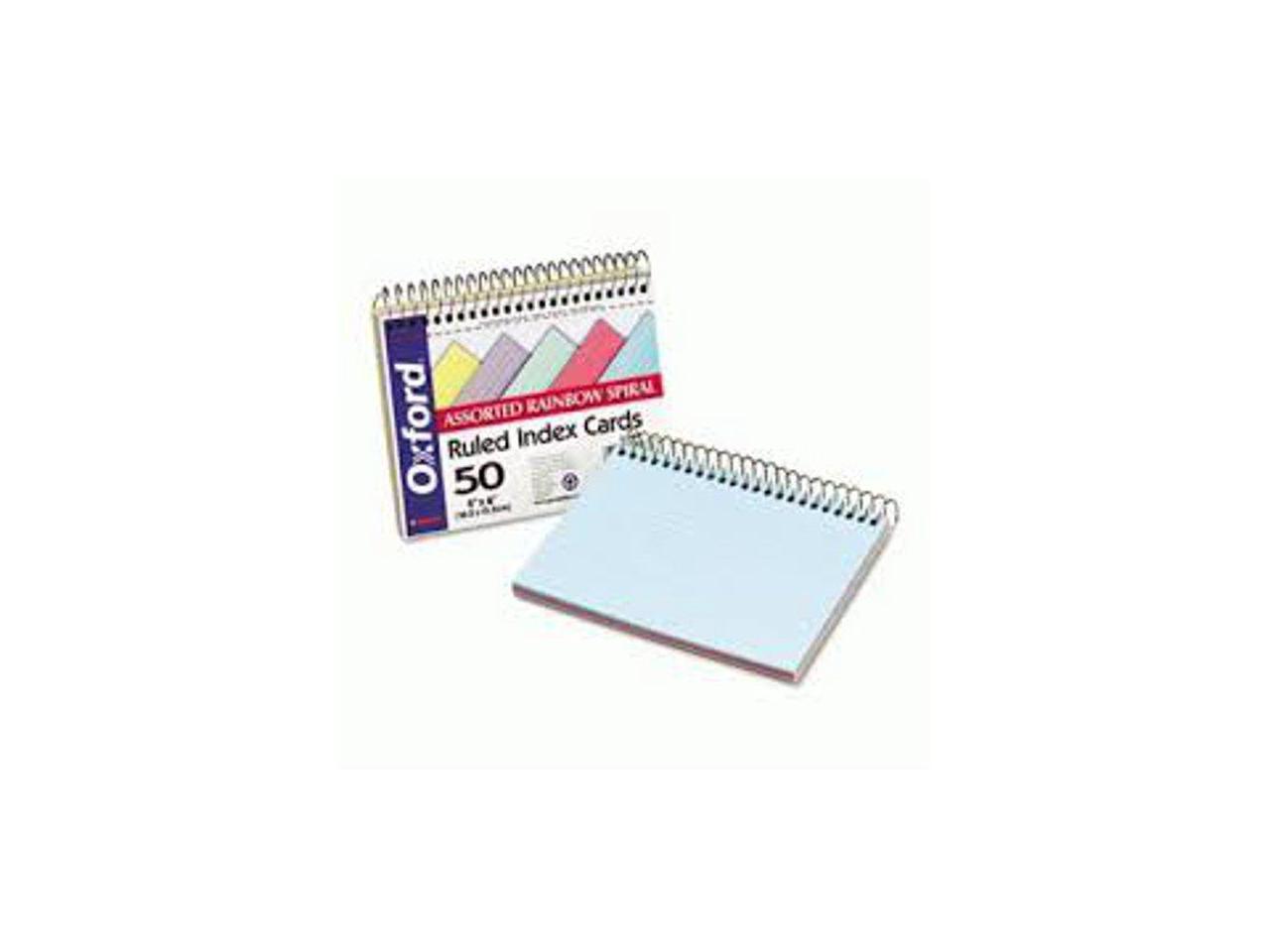 Oxford 40286 Spiral Index Cards, 4 x 6, Blue/Violet/Canary/Green/Cherry, 50/Pack