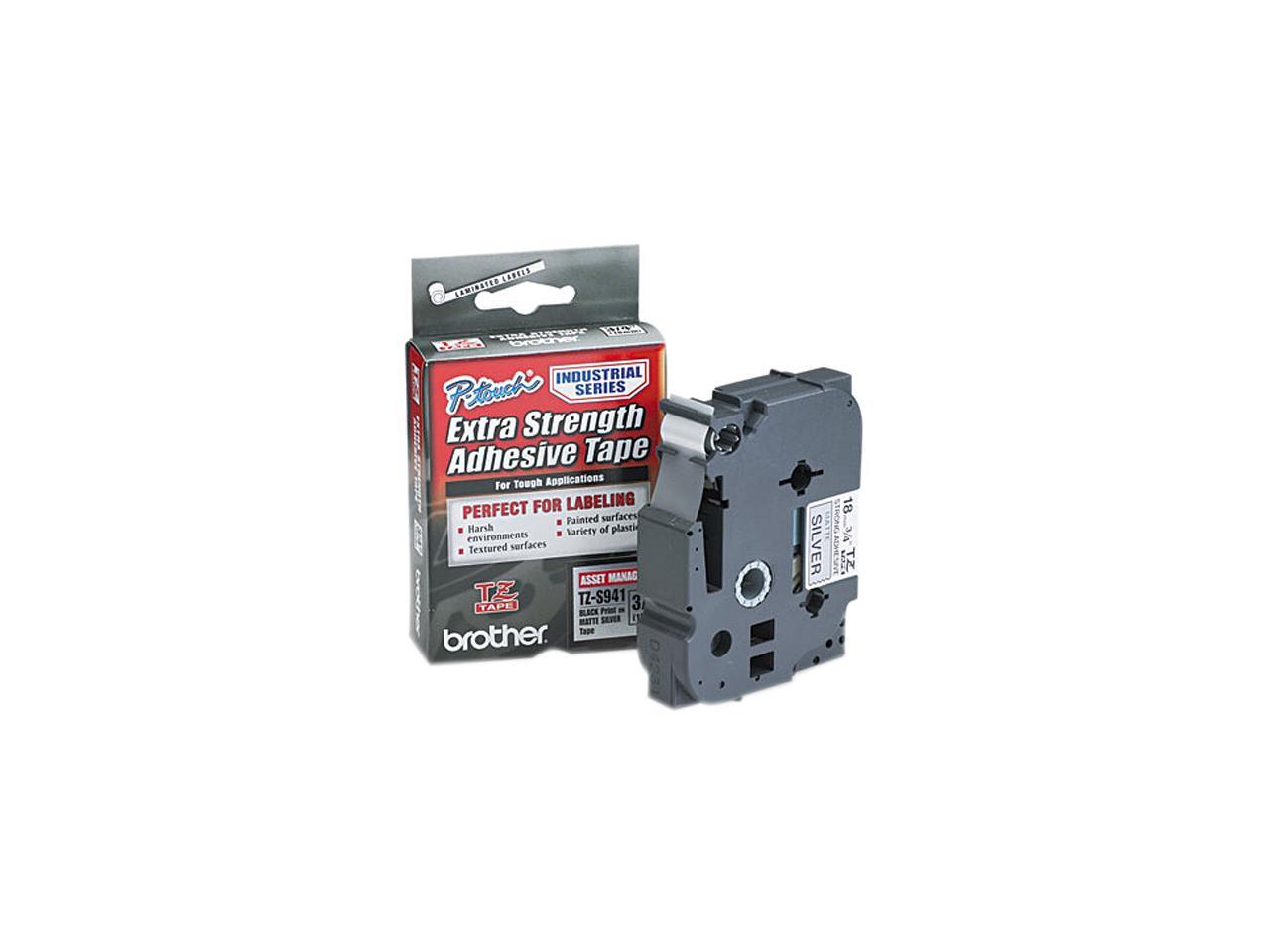 Brother P-Touch BRTTZES941 TZ Extra-Strength Adhesive Laminated Labeling Tape, 3/4"w, Black on Matte Silver