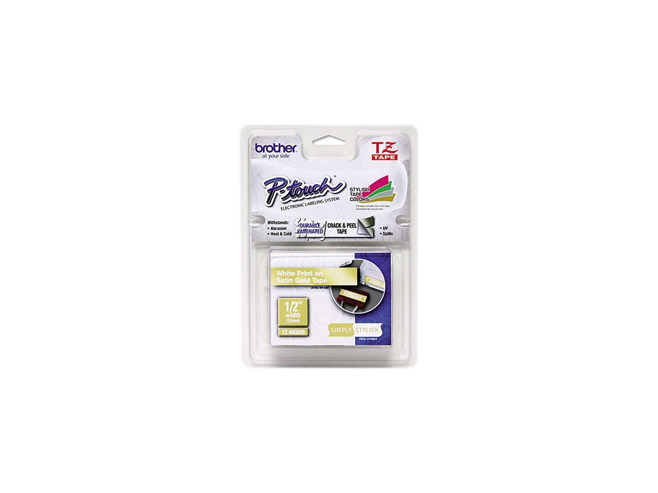 Brother TZEMQ835 12 mm (0.47") White on Satin Gold tape for P-touch 5 m (16.40 ft.)