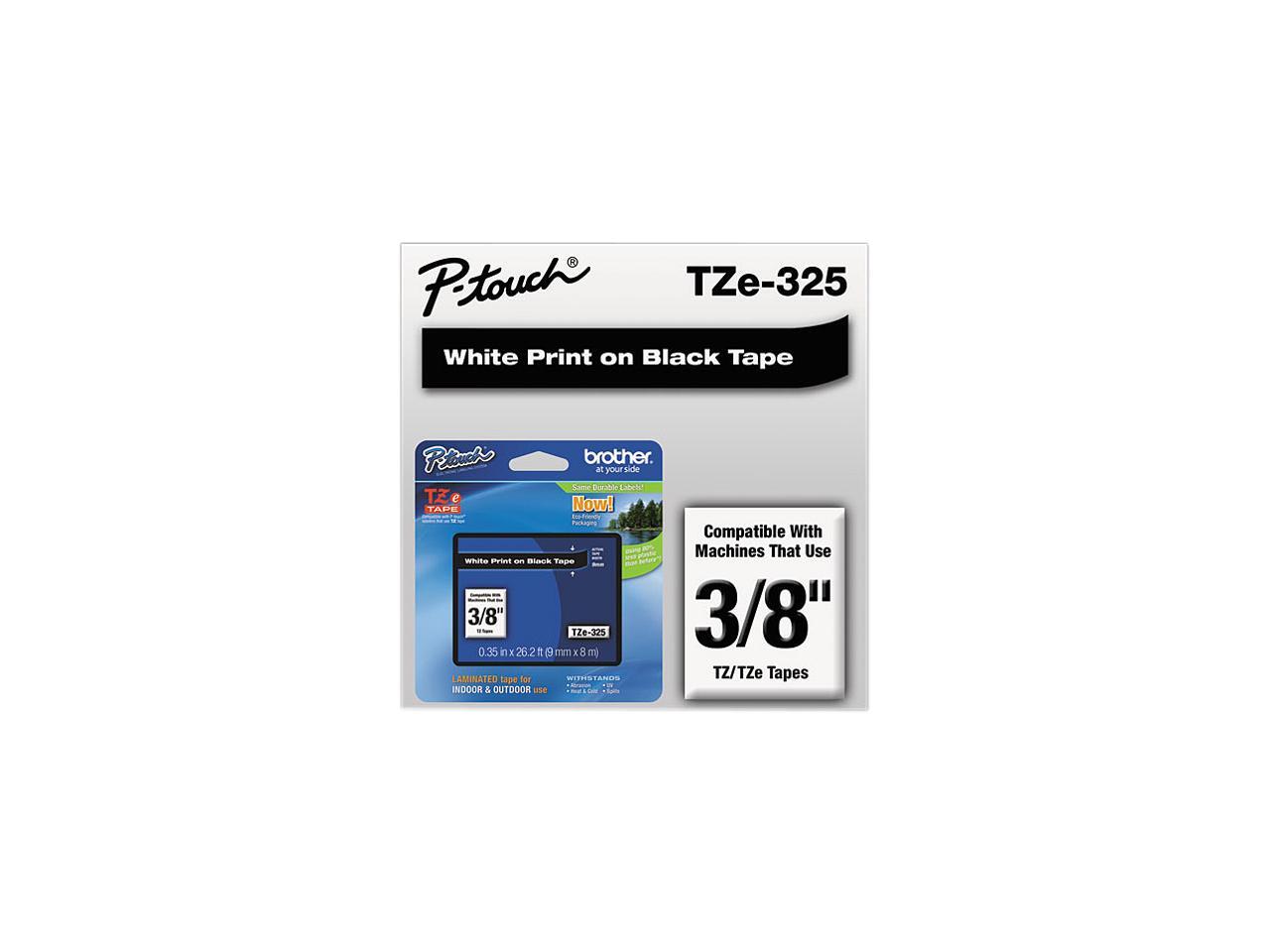 Brother TZE325 P-touch Laminated Tape, 9mm (0.35") White on Black tape for P-Touch 8m (26.2 ft)