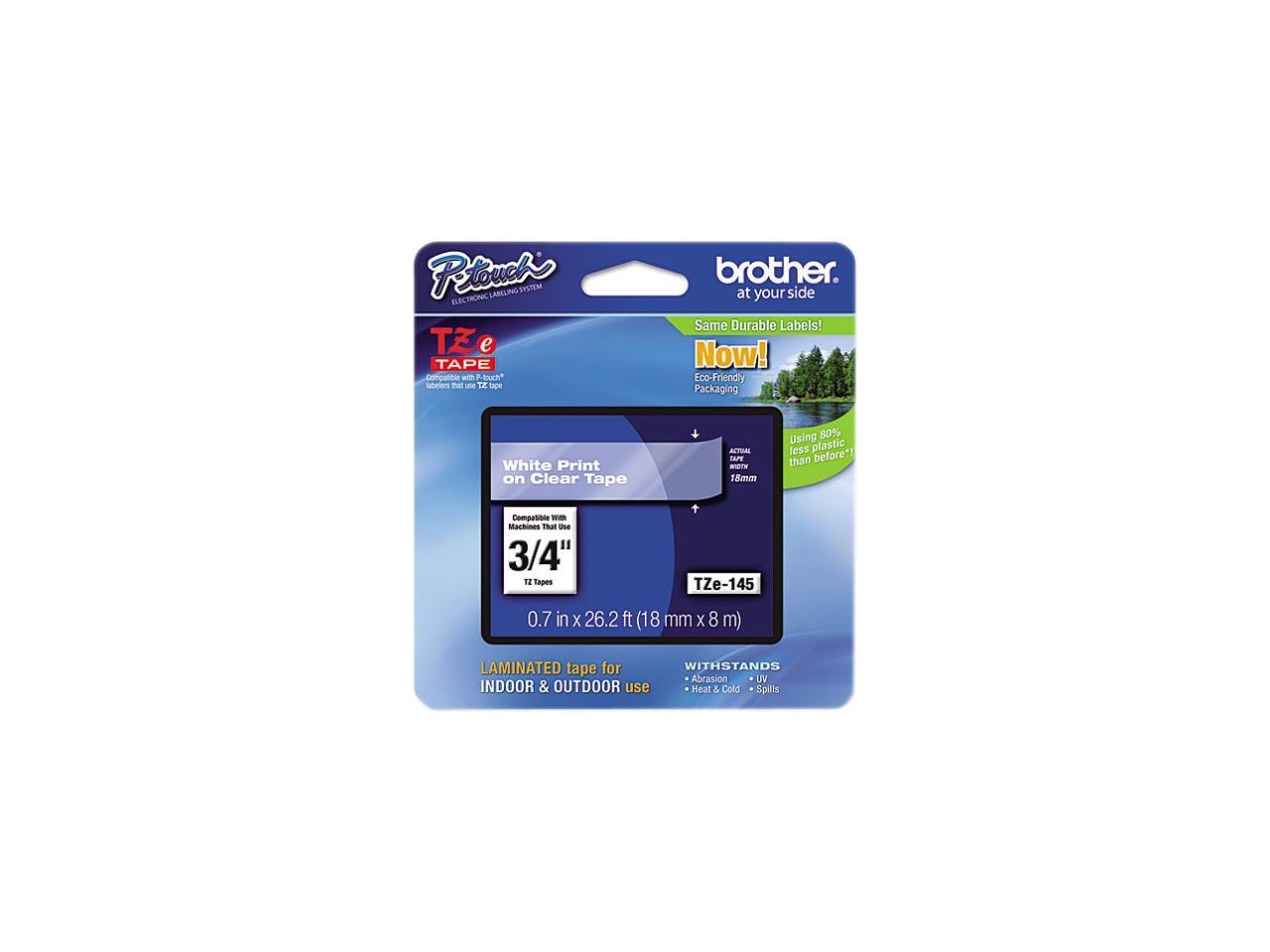 Brother TZE145 18 mm (0.70") White on Clear tape for P-Touch 8 m (26.20 ft.)