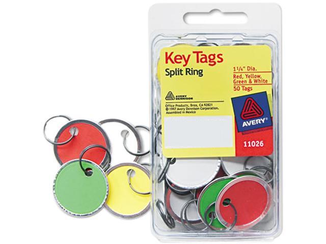 Avery Card Stock Metal Rim Key Tags 1 1/4 dia Assorted Colors 50/Pack 11026