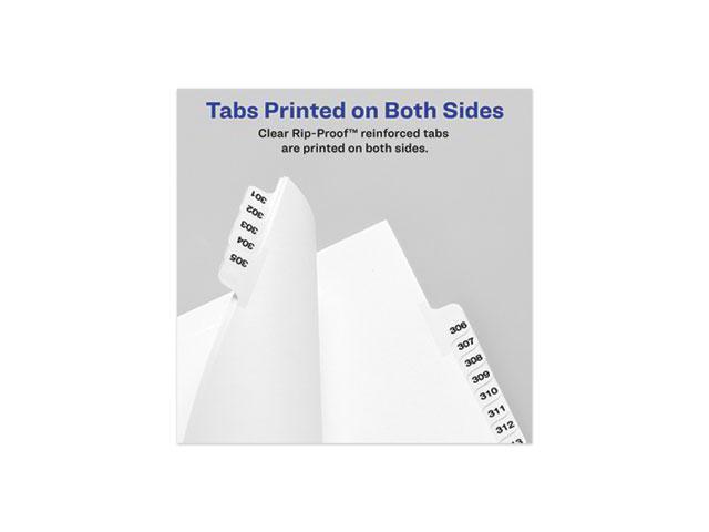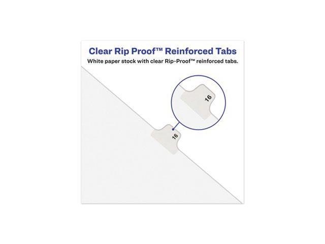 Rip Proof™ reinforced tabs printed on both sides with exhibit letter. Easy-to-read Helvetica bold type stands out.