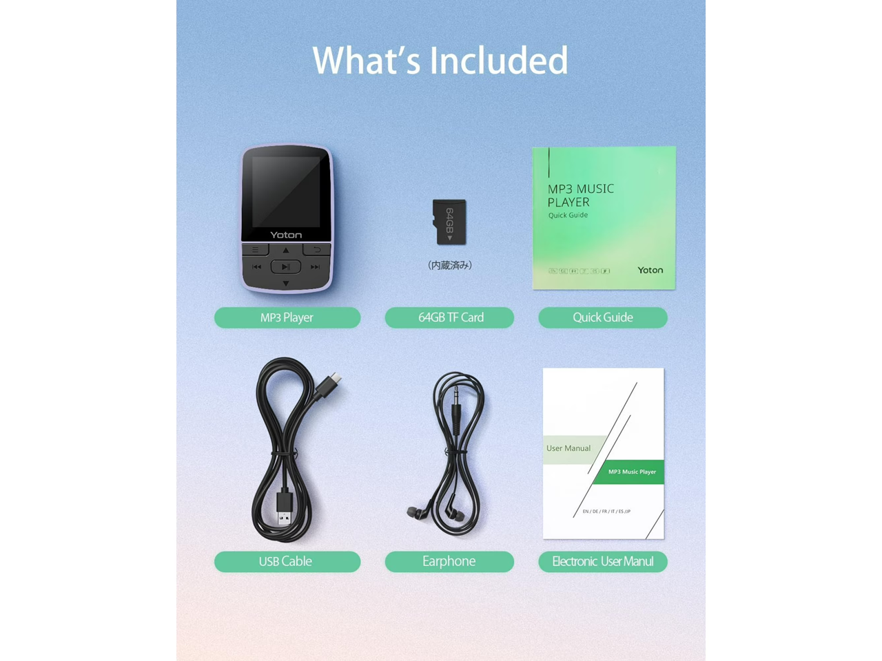 - CLIP & GO FREEDOM - Designed for active lifestyles, YOTON's MP3 player comes with a sports clip for easy attachment to your waist or backpack. Weighing just 28g, you'll hardly notice it, perfect for on-the-move music enthusiasts